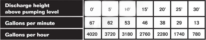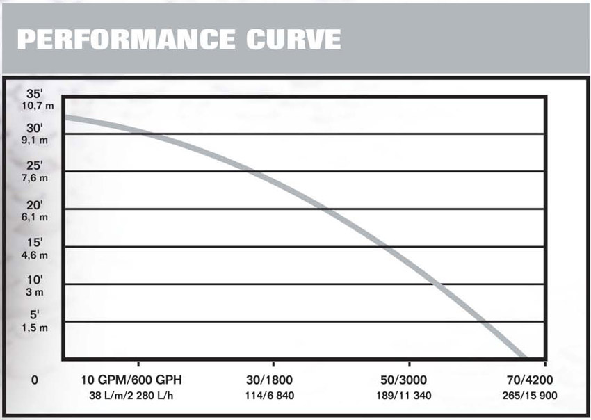 FLOW at 10' LIFT: 53 GPM (201 lpm)