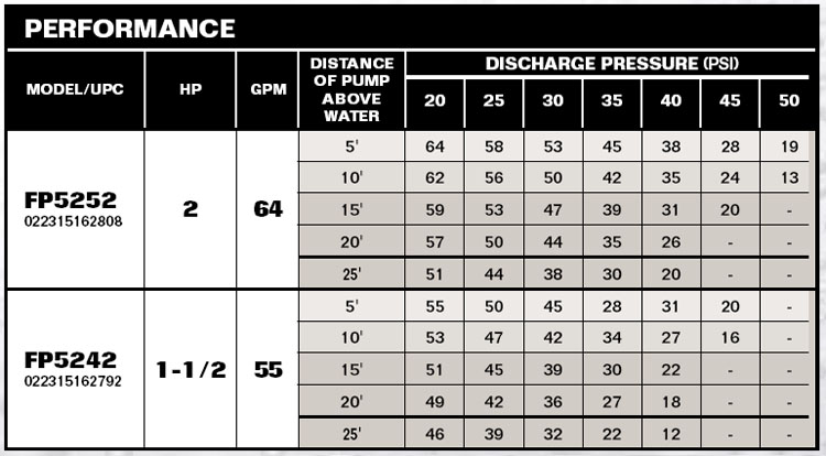 FLOW AT 10' LIFT and 30 PSI: 42 GPM