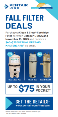 | Clean & Clear® Cartridge Filters | OCT. 1, 2025 - NOV. 15, 2025 | $40-$75 REBATE ON SELECT MODELS* | Submit |